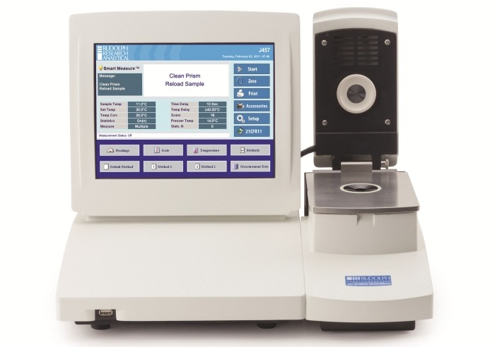 Rudolph Research refractometers are advanced analytical instruments designed to measure the refractive index of liquids and solutions with high precision. These systems are used across industries such as food and beverage, pharmaceuticals, chemicals, and petroleum to determine concentration, purity, and composition. The product line includes both benchtop and portable models, offering flexibility for laboratory and field applications. Built with advanced optics and temperature control systems, Rudolph refractometers provide consistent and reproducible measurements, even for complex or temperature-sensitive samples.