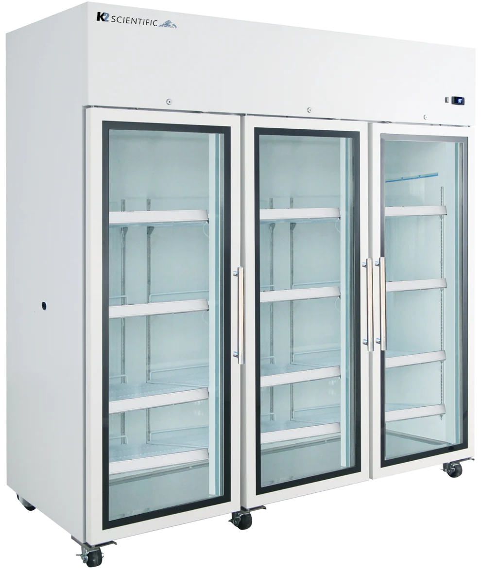 The 73 cu. ft. solid triple door refrigerator is a high-capacity unit designed for large laboratory and medical storage applications. Its solid door construction provides superior insulation, ensuring consistent temperature control and energy efficiency.