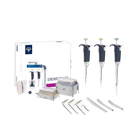 The PIPETMAN L Starter Kit includes three commonly used pipettes (P20, P200, and P1000), providing a complete solution for general laboratory liquid handling. Designed for accuracy and comfort, the kit supports a wide range of applications from small-volume transfers to larger sample handling.