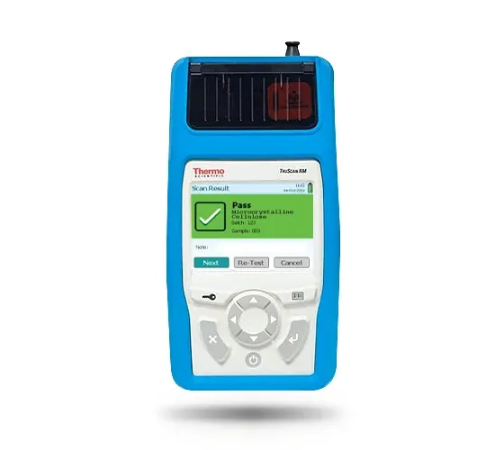 The TruScan™ RM handheld Raman analyzer is designed for pharmaceutical manufacturing environments, providing rapid material identification and compliance with regulatory standards. It supports non-destructive analysis and secure data handling.
